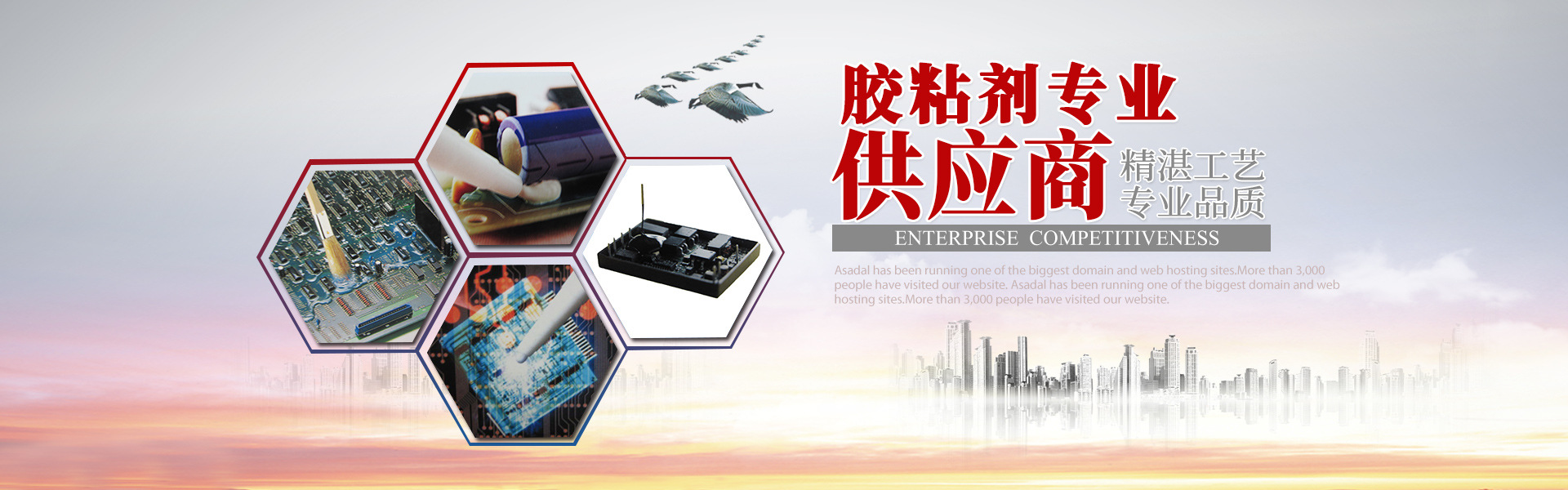 可為金屬、塑膠、塑料、橡膠、皮革、玻璃、陶瓷、石材、木器、紙品等材質(zhì)提供全系列的接著產(chǎn)品及粘接方案;以及為電子、電器、光電、電機(jī)、通訊、安防等行業(yè)的電子元器件、零部件、模塊組件、線路板之粘接、密封、灌封、包封、組立、披覆、保護(hù)等工序提供十分理想先進(jìn)的工藝手段。